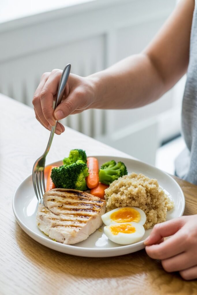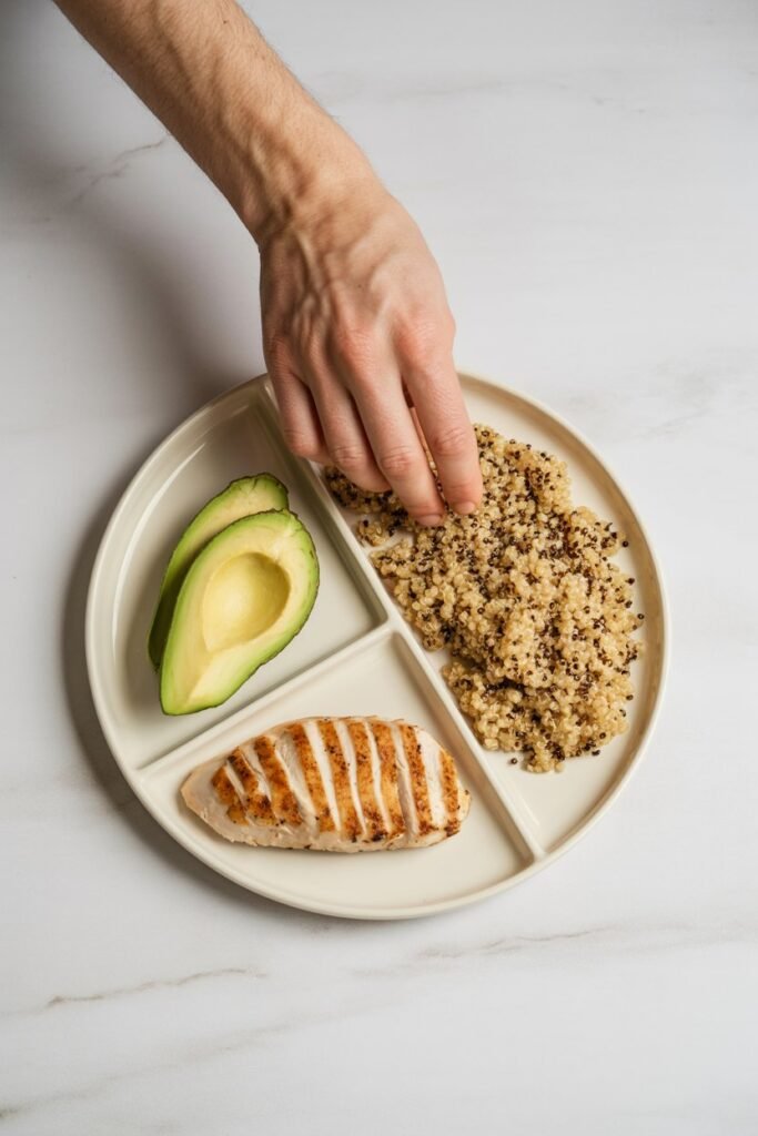 Pro tip: Use visual cues and mindful habits. A serving of protein should roughly fit in your palm, carbs about a cupped hand, and fats like nuts should be no more than a thumb-sized portion. Eating slowly and paying attention to fullness signals also prevents accidental overeating. Awareness is more effective than restriction.
