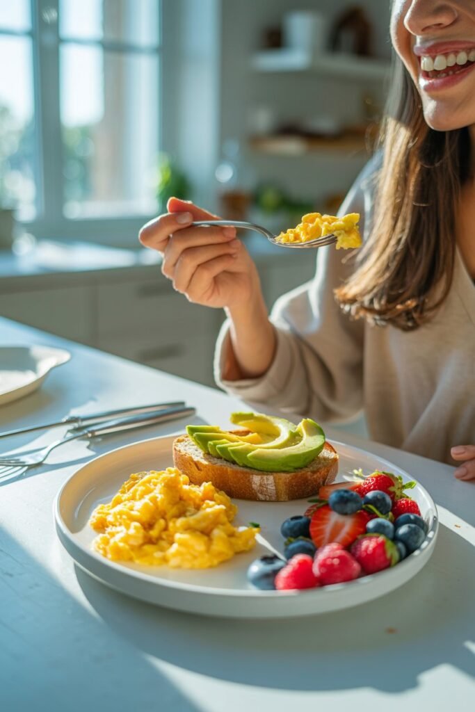 Pro tip: Instead of skipping, aim for balanced meals. For breakfast, try options like scrambled eggs with spinach, a slice of whole-grain toast, or Greek yogurt with berries. Eating consistently keeps your metabolism steady, reduces cravings, and helps you stay focused throughout the day.