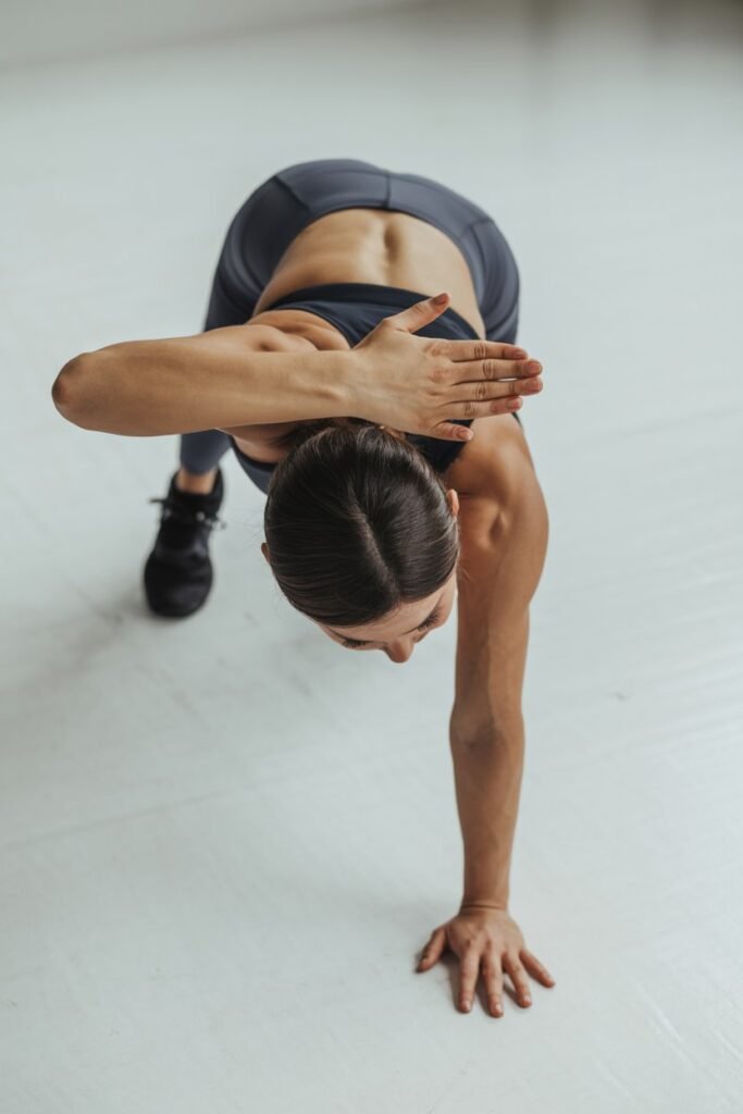 This move targets shoulders, arms, and your core at the same time. I like adding this on days I want an extra arm burn without equipment.