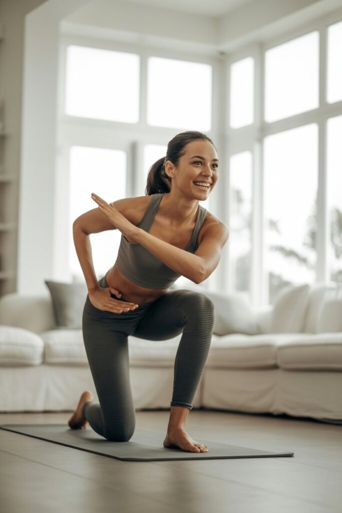 A proper warm-up prevents injury and makes exercises more effective. I start with 5–7 minutes of gentle movements.