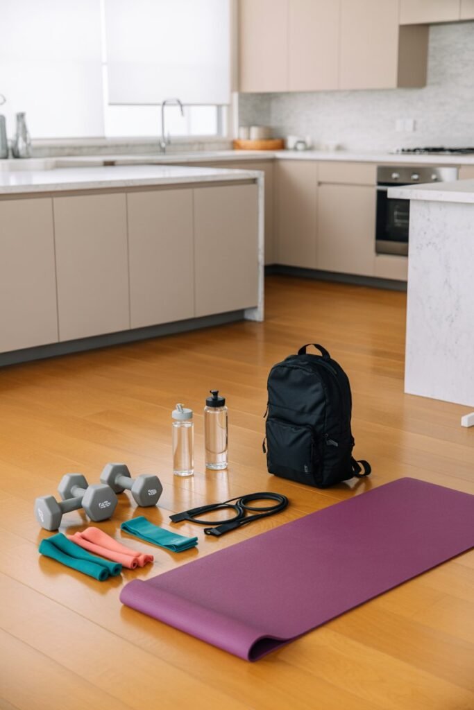- Household Items – No dumbbells? No problem. Water bottles, canned goods, or a small backpack filled with books work just fine.