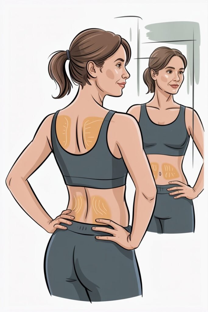 - Posture Checks – Sitting and standing tall reduces visible back fat.